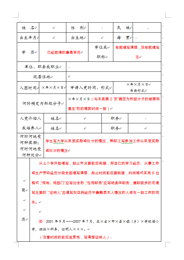 6.入党积极分子登记表