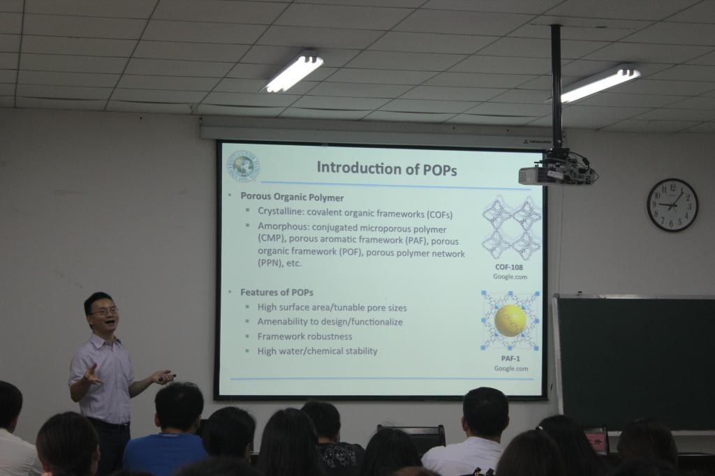 马胜前教授有关功能性孔材料的研究,将所学知识应用到实际生活中,为之后的研究提供了极大的便利,而且报告生动有趣,贴近生活,引发了与会老师和同学们的热烈讨论。